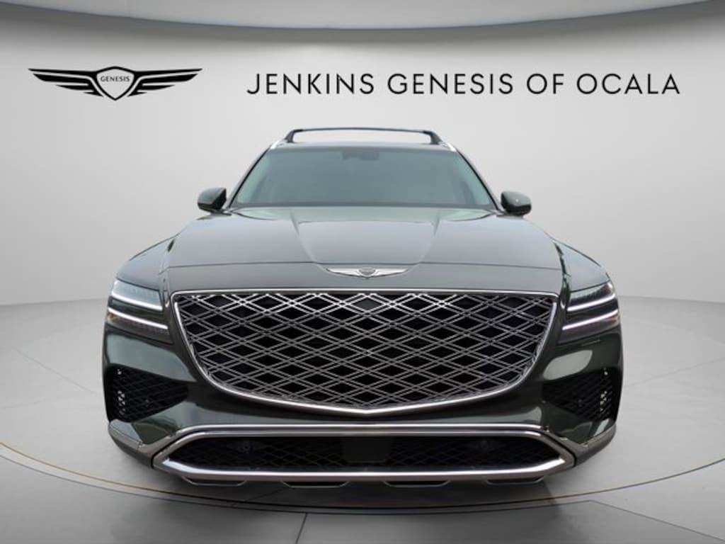 This vehicle comes equipped with Option Group 01, Genesis Certified, 12 Speakers, 4-Wheel Disc Brakes, ABS brakes, Air Conditioning, Alloy wheels, AM/FM radio: SiriusXM, Anti-whiplash front head restraints, Auto High-beam Headlights, Auto tilt-away steering wheel, Auto-dimming door mirrors, Auto-dimming Rear-View mirror, Auto-leveling suspension, Automatic temperature control, Brake assist, Bumpers: body-color, Cargo Blocks, Cargo Net, Compass, Delay-off headlights, Driver door bin, Driver vanity mirror, Dual front impact airbags, Dual front side impact airbags, Electronic Stability Control, Emergency communication system: Genesis Connected Services, Exterior Parking Camera Rear, Four wheel independent suspension, Front & Rear Mudguards, Front anti-roll bar, Front Bucket Seats, Front Center Armrest, Front dual zone A/C, Front reading lights, Fully automatic headlights, Garage door transmitter: HomeLink, Heated door mirrors, Heated Front Bucket Seats, Heated front seats, Illuminated entry, Knee airbag, Leather steering wheel, Leatherette Seating Surfaces, Low tire pressure warning, Memory seat, Navigation System, Occupant sensing airbag, Outside temperature display, Overhead airbag, Overhead console, Panic alarm, Passenger door bin, Passenger vanity mirror, Power door mirrors, Power driver seat, Power Liftgate, Power passenger seat, Power steering, Power windows, Radio data system, Radio: AM/FM/SiriusXM/HD, Rain sensing wipers, Rear air conditioning, Rear anti-roll bar, Rear reading lights, Rear seat center armrest, Rear side impact airbag, Rear window defroster, Rear window wiper, Remote keyless entry, Roadside Assistance Kit, Security system, Speed control, Speed-sensing steering, Speed-Sensitive Wipers, Split folding rear seat, Spoiler, Steering wheel memory, Steering wheel mounted audio controls, Tachometer, Telescoping steering wheel, Tilt steering wheel, Traction control, Trip computer, Turn signal indicator mirrors, Variably intermittent wipers, and Wheels: 19" x 8.5J Medium Metallic Gray Alloy .