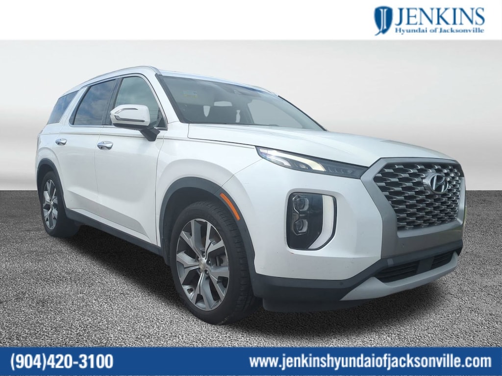CARFAX One-Owner. This 2021 Hyundai Palisade SEL in Hyper White features Convenience Package, Convenience Package P2 (115-Volt AC Power Outlet, 3rd Row USB Outlets, 7" High-Resolution Cluster Display, Acoustic Front Side Glass, Auto Leveling Rear Suspension, Front Parking Sensors, Hands-Free Smart Liftgate, LED Taillights, Rear Side Window Sunshades, Ultrasonic Rear Occupant Alert, Wheels: 20" x 7.5J Split 5-Spoke Machined Alloy, and Wireless Phone Charger), 3.648 Axle Ratio, 3rd row seats: split-bench, 4-Wheel Disc Brakes, 6 Speakers, ABS brakes, Air Conditioning, Alloy wheels, AM/FM radio, Apple CarPlay & Android Auto, Auto High-beam Headlights, Auto-dimming Rear-View mirror, Automatic temperature control, Brake assist, Bumpers: body-color, Cargo Tray, Carpeted Floor Mats, Cloth Seat Trim, Delay-off headlights, Driver door bin, Driver vanity mirror, Dual front impact airbags, Dual front side impact airbags, Electronic Stability Control, First Aid Kit, Four wheel independent suspension, Front anti-roll bar, Front Bucket Seats, Front Center Armrest, Front dual zone A/C, Front reading lights, Fully automatic headlights, Garage door transmitter: HomeLink, Heated door mirrors, Heated Front Bucket Seats, Heated front seats, Illuminated entry, Knee airbag, Low tire pressure warning, Mudguards, Occupant sensing airbag, Outside temperature display, Overhead airbag, Overhead console, Panic alarm, Passenger door bin, Passenger vanity mirror, Power door mirrors, Power driver seat, Power moonroof, Power steering, Power windows, Radio data system, Radio: AM/FM/MP3 Display Audio, Rear air conditioning, Rear anti-roll bar, Rear reading lights, Rear window defroster, Rear window wiper, Reclining 3rd row seat, Remote keyless entry, Security system, Speed control, Speed-sensing steering, Split folding rear seat, Spoiler, Steering wheel mounted audio controls, Tachometer, Telescoping steering wheel, Tilt steering wheel, Traction control, Trip computer, Turn signal indicator mirrors, Variably intermittent wipers, Wheel Locks, and Wheels: 18" x 7.5J Machine Finish Alloy . Visit our showroom 24/7 at Jenkinshyundaiofjacksonville or call 904-420-3100. FWD