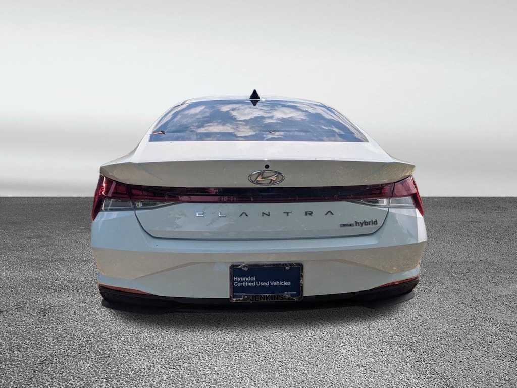 CARFAX One-Owner. Clean CARFAX. This 2023 Hyundai Elantra Hybrid Blue in Ceramic White features Option Group 01, Preferred Accessory Package (Cargo Side Bins, First Aid Kit, and Trunk/Cargo Hook), 16" x 6.5J Alloy Wheels, 4-Wheel Disc Brakes, 6 Speakers, ABS brakes, Air Conditioning, Alloy wheels, AM/FM radio: SiriusXM, Apple CarPlay & Android Auto, Auto High-beam Headlights, Automatic temperature control, Brake assist, Bumpers: body-color, Cargo Net, Carpeted Floor Mats, Cloth Seat Trim, Delay-off headlights, Driver door bin, Driver vanity mirror, Dual front impact airbags, Dual front side impact airbags, Electronic Stability Control, Emergency communication system: Blue Link Connected Car Service (3-year complimentary subscription), Exterior Parking Camera Rear, Front anti-roll bar, Front Bucket Seats, Front Center Armrest, Front dual zone A/C, Front reading lights, Front wheel independent suspension, Fully automatic headlights, Heated door mirrors, Heated Front Bucket Seats, Heated front seats, Illuminated entry, Low tire pressure warning, Occupant sensing airbag, Outside temperature display, Overhead airbag, Overhead console, Panic alarm, Passenger door bin, Passenger vanity mirror, Power door mirrors, Power steering, Power windows, Radio: AM/FM/HD/SiriusXM Display Audio, Rear window defroster, Remote keyless entry, Security system, Speed control, Speed-sensing steering, Steering wheel mounted audio controls, Tachometer, Telescoping steering wheel, Tilt steering wheel, Traction control, Trip computer, and Variably intermittent wipers . Visit our showroom 24/7 at Jenkinshyundaiofjacksonville or call 904-420-3100. FWD