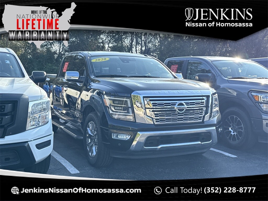 Certified. Super Black 2020 Nissan Titan SL RWD 9-Speed Automatic 5.6L V8 DOHC 32V LEV3-ULEV70 400hp Jenkins has been doing business for over 50 years and we appreciate your business! Our used cars undergo an extensive Detail and Reconditioning Process, and are thoroughly inspected to meet the criteria for our exclusive warranty. Buy with confidence at Jenkins Nissan of Homosassa! We spend an average of $2779 in Detail and Reconditioning on every used car. The Reconditioning and Maintenance Repair History is Available Upon Request. We don't just inspect, we fix :)