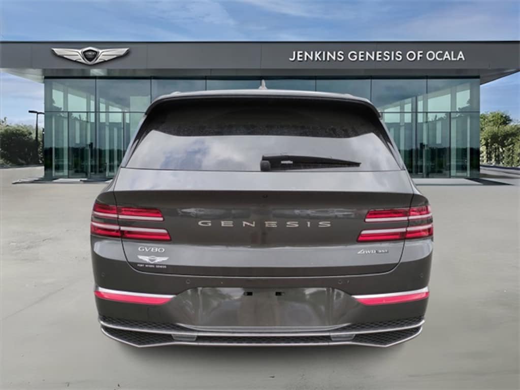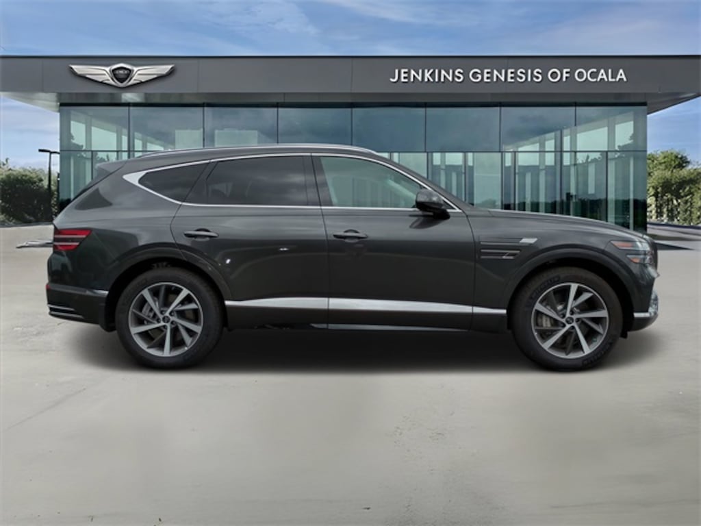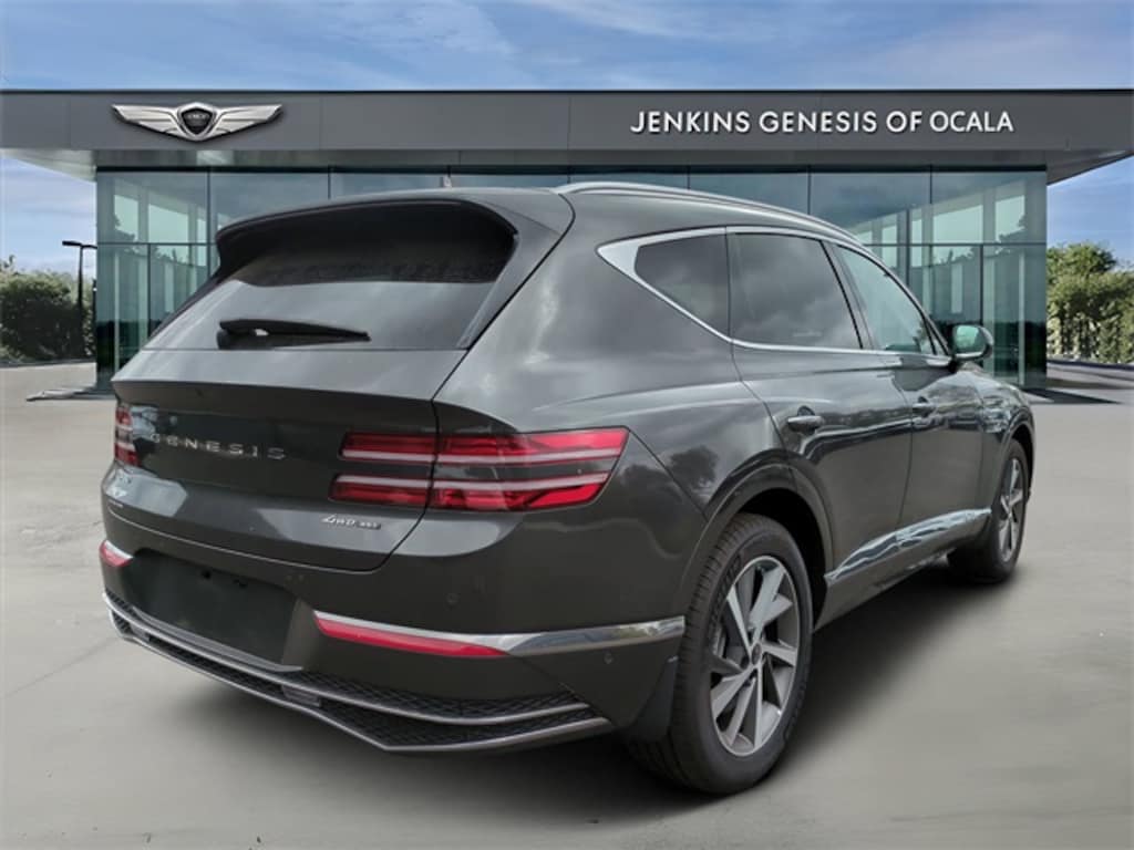 This vehicle comes equipped with Option Group 01, 18 Speakers, 3rd row seats: split-bench, 4-Wheel Disc Brakes, ABS brakes, Adaptive suspension, Air Conditioning, Alloy wheels, AM/FM radio: SiriusXM, Anti-whiplash front head restraints, Auto High-beam Headlights, Auto tilt-away steering wheel, Auto-dimming door mirrors, Auto-dimming Rear-View mirror, Automatic temperature control, Brake assist, Bumpers: body-color, Cargo Blocks, Cargo Net, Compass, Delay-off headlights, Driver door bin, Driver vanity mirror, Dual front impact airbags, Dual front side impact airbags, Electronic Stability Control, Emergency communication system: Genesis Connected Services, Exterior Parking Camera Rear, First Aid Kit, Four wheel independent suspension, Fragrance Cartridge, Front & Rear Mudguards, Front anti-roll bar, Front Bucket Seats, Front Center Armrest, Front dual zone A/C, Front reading lights, Fully automatic headlights, Garage door transmitter: HomeLink, Genuine wood console insert, Genuine wood dashboard insert, Genuine wood door panel insert, Heads-Up Display, Heated & Ventilated Front Bucket Seats, Heated door mirrors, Heated front seats, Heated rear seats, Heated steering wheel, Illuminated entry, Knee airbag, Leather Seating Surfaces, Leather steering wheel, Low tire pressure warning, Memory seat, Navigation System, NFC Key Card, Occupant sensing airbag, Outside temperature display, Overhead airbag, Overhead console, Panic alarm, Passenger door bin, Passenger vanity mirror, Power door mirrors, Power driver seat, Power Liftgate, Power moonroof, Power passenger seat, Power steering, Power windows, Radio data system, Radio: AM/FM/SiriusXM/HD Bang & Olufsen Sound Sys, Rain sensing wipers, Rear air conditioning, Rear anti-roll bar, Rear reading lights, Rear seat center armrest, Rear side impact airbag, Rear window defroster, Rear window wiper, Reclining 3rd row seat, Remote keyless entry, Security system, Speed control, Speed-sensing steering, Speed-Sensitive Wipers, Split folding rear seat, Spoiler, Steering wheel memory, Steering wheel mounted audio controls, Tachometer, Telescoping steering wheel, Tilt steering wheel, Traction control, Trip computer, Turn signal indicator mirrors, Variably intermittent wipers, Ventilated front seats, and Wheels: 20" x 8.5J Dark Gray Matte Alloy .