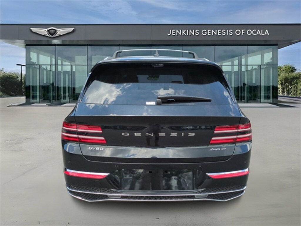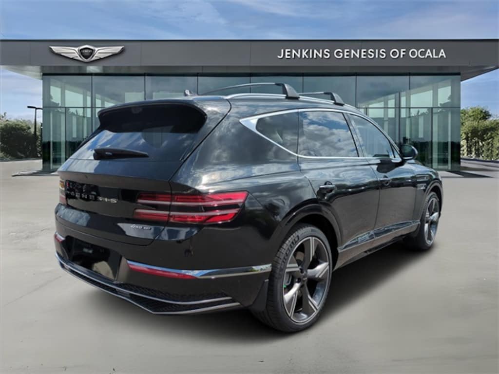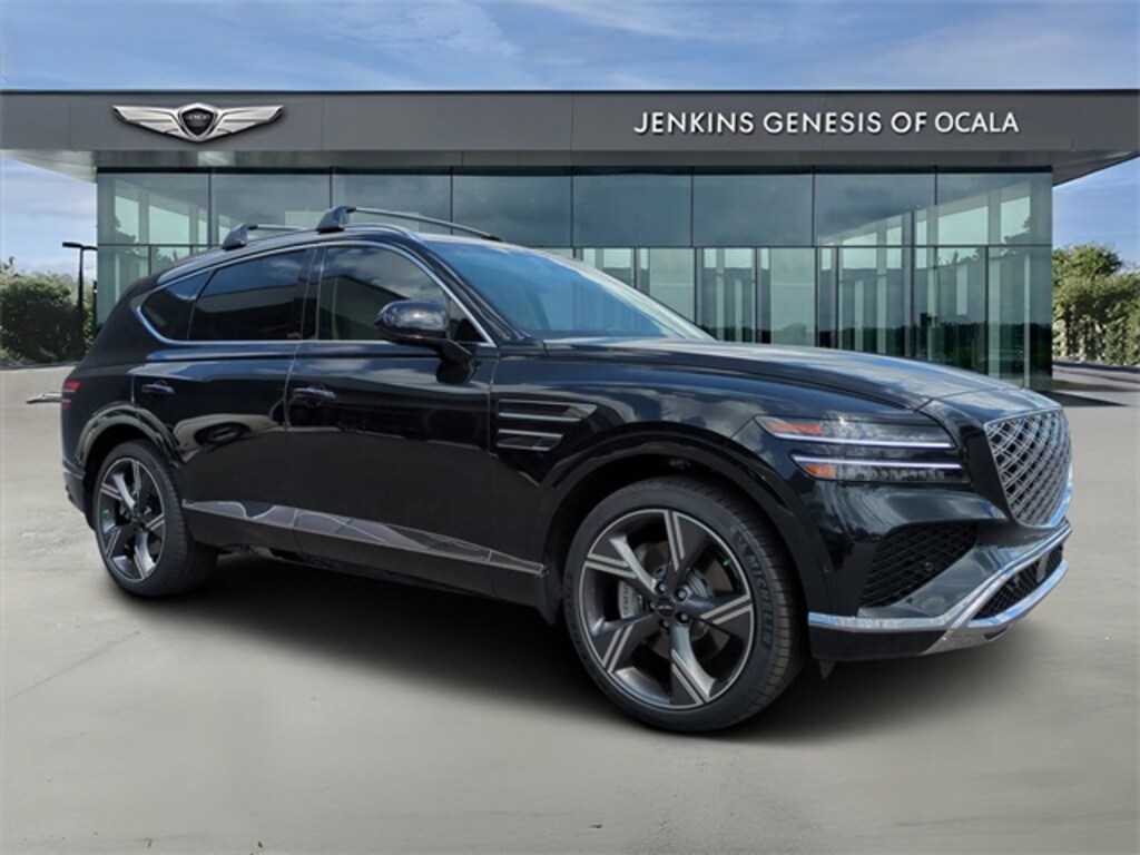 This vehicle comes equipped with Option Group 01, 18 Speakers, 3rd row seats: split-bench, 4-Wheel Disc Brakes, ABS brakes, Adaptive suspension, Air Conditioning, Alloy wheels, AM/FM radio: SiriusXM, Anti-whiplash front head restraints, Auto High-beam Headlights, Auto tilt-away steering wheel, Auto-dimming door mirrors, Auto-dimming Rear-View mirror, Automatic temperature control, Brake assist, Bumpers: body-color, Cargo Net, Compass, Delay-off headlights, Driver door bin, Driver vanity mirror, Dual front impact airbags, Dual front side impact airbags, Electronic Stability Control, Emergency communication system: Genesis Connected Services, Exterior Parking Camera Rear, First Aid Kit, Four wheel independent suspension, Front & Rear Mudguards, Front anti-roll bar, Front Bucket Seats, Front Center Armrest, Front dual zone A/C, Front reading lights, Fully automatic headlights, Garage door transmitter: HomeLink, Genuine wood console insert, Genuine wood dashboard insert, Genuine wood door panel insert, Heads-Up Display, Heated & Ventilated Front Bucket Seats, Heated door mirrors, Heated front seats, Heated rear seats, Heated steering wheel, Illuminated entry, Knee airbag, Leather steering wheel, Low tire pressure warning, Memory seat, Nappa Leather Seating Surfaces, Navigation System, NFC Key Card, Occupant sensing airbag, Outside temperature display, Overhead airbag, Overhead console, Panic alarm, Passenger door bin, Passenger vanity mirror, Power door mirrors, Power driver seat, Power Liftgate, Power moonroof, Power passenger seat, Power steering, Power windows, Radio data system, Radio: AM/FM/SiriusXM/HD Bang & Olufsen Sound Sys, Rain sensing wipers, Rear air conditioning, Rear anti-roll bar, Rear dual zone A/C, Rear reading lights, Rear seat center armrest, Rear side impact airbag, Rear window defroster, Rear window wiper, Reclining 3rd row seat, Remote keyless entry, Roof Rack Cross Bars, Security system, Speed control, Speed-sensing steering, Speed-Sensitive Wipers, Split folding rear seat, Spoiler, Steering wheel memory, Steering wheel mounted audio controls, Tachometer, Telescoping steering wheel, Tilt steering wheel, Traction control, Trip computer, Turn signal indicator mirrors, Variably intermittent wipers, Ventilated front seats, Ventilated rear seats, and Wheels: 22" x 9.5J Dark Gray Matte Alloy .