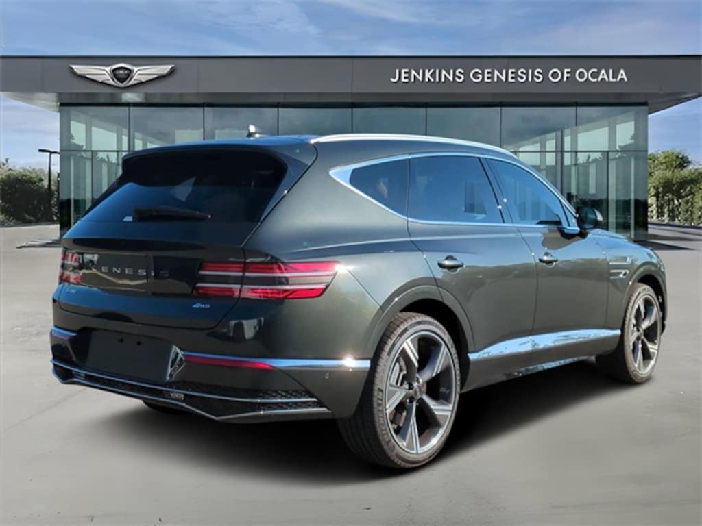 This vehicle comes equipped with Option Group 01, 18 Speakers, 3rd row seats: split-bench, 4-Wheel Disc Brakes, ABS brakes, Adaptive suspension, Air Conditioning, Alloy wheels, AM/FM radio: SiriusXM, Anti-whiplash front head restraints, Auto High-beam Headlights, Auto tilt-away steering wheel, Auto-dimming door mirrors, Auto-dimming Rear-View mirror, Automatic temperature control, Brake assist, Bumpers: body-color, Compass, Delay-off headlights, Driver door bin, Driver vanity mirror, Dual front impact airbags, Dual front side impact airbags, Electronic Stability Control, Emergency communication system: Genesis Connected Services, Exterior Parking Camera Rear, First Aid Kit, Four wheel independent suspension, Front anti-roll bar, Front Bucket Seats, Front Center Armrest, Front dual zone A/C, Front reading lights, Fully automatic headlights, Garage door transmitter: HomeLink, Genuine wood console insert, Genuine wood dashboard insert, Genuine wood door panel insert, Heads-Up Display, Heated and Ventilated Front Bucket Seats, Heated door mirrors, Heated front seats, Heated rear seats, Heated steering wheel, Illuminated entry, Knee airbag, Leather Seating Surfaces, Leather steering wheel, Low tire pressure warning, Memory seat, Navigation System, NFC Key Card, Occupant sensing airbag, Outside temperature display, Overhead airbag, Overhead console, Panic alarm, Passenger door bin, Passenger vanity mirror, Power door mirrors, Power driver seat, Power Liftgate, Power moonroof, Power passenger seat, Power steering, Power windows, Radio data system, Radio: AM/FM/HD Bose Premium Sound System, Rain sensing wipers, Rear air conditioning, Rear anti-roll bar, Rear dual zone A/C, Rear reading lights, Rear seat center armrest, Rear side impact airbag, Rear window defroster, Rear window wiper, Reclining 3rd row seat, Remote keyless entry, Security system, Speed control, Speed-sensing steering, Speed-Sensitive Wipers, Split folding rear seat, Spoiler, Steering wheel memory, Steering wheel mounted audio controls, Tachometer, Telescoping steering wheel, Tilt steering wheel, Traction control, Trip computer, Turn signal indicator mirrors, Variably intermittent wipers, Ventilated front seats, and Wheels: 22" x 9.5J Dark Gray Matte Alloy .