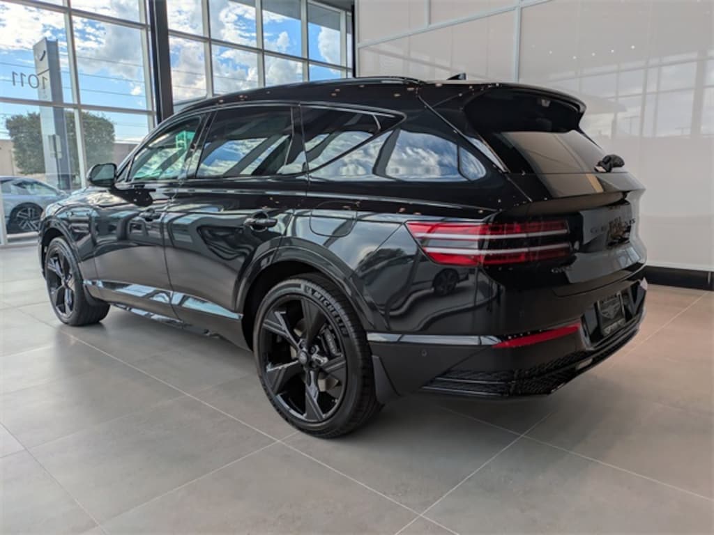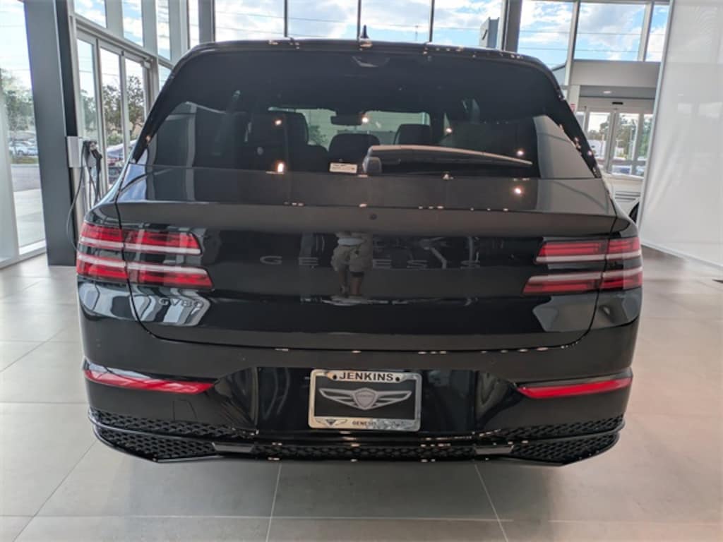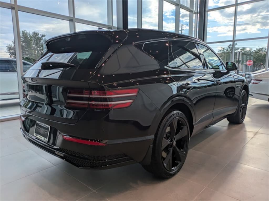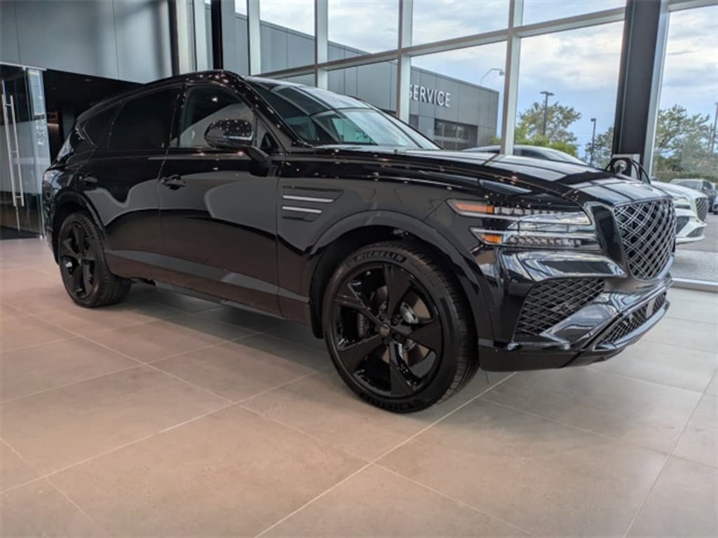 This vehicle comes equipped with Option Group 01, 18 Speakers, 4-Wheel Disc Brakes, ABS brakes, Adaptive suspension, Air Conditioning, Alloy wheels, AM/FM radio: SiriusXM, Anti-whiplash front head restraints, Auto High-beam Headlights, Auto tilt-away steering wheel, Auto-dimming door mirrors, Auto-dimming Rear-View mirror, Automatic temperature control, Brake assist, Cargo Blocks, Cargo Mat, Cargo Net, Compass, Delay-off headlights, Driver door bin, Driver vanity mirror, Dual front impact airbags, Dual front side impact airbags, Electronic Stability Control, Emergency communication system: Genesis Connected Services, Exterior Parking Camera Rear, First Aid Kit, Four wheel independent suspension, Front & Rear Mudguards, Front anti-roll bar, Front Bucket Seats, Front Center Armrest, Front dual zone A/C, Front reading lights, Fully automatic headlights, Garage door transmitter: HomeLink, Genuine wood console insert, Genuine wood dashboard insert, Genuine wood door panel insert, Heads-Up Display, Heated & Ventilated Front Bucket Seats, Heated door mirrors, Heated front seats, Heated rear seats, Heated steering wheel, Illuminated entry, Knee airbag, Leather steering wheel, Low tire pressure warning, Memory seat, Nappa Leather Seating Surfaces, Navigation System, NFC Key Card, Occupant sensing airbag, Outside temperature display, Overhead airbag, Overhead console, Panic alarm, Passenger door bin, Passenger vanity mirror, Power door mirrors, Power driver seat, Power Liftgate, Power moonroof, Power passenger seat, Power steering, Power windows, Radio data system, Radio: AM/FM/SiriusXM/HD Bang & Olufsen Sound Sys, Rain sensing wipers, Rear air conditioning, Rear anti-roll bar, Rear dual zone A/C, Rear reading lights, Rear seat center armrest, Rear side impact airbag, Rear window defroster, Rear window wiper, Remote keyless entry, Security system, Speed control, Speed-sensing steering, Speed-Sensitive Wipers, Split folding rear seat, Spoiler, Steering wheel memory, Steering wheel mounted audio controls, Tachometer, Telescoping steering wheel, Tilt steering wheel, Traction control, Trip computer, Turn signal indicator mirrors, Variably intermittent wipers, Ventilated front seats, Ventilated rear seats, and Wheels: 22" x 9.5J Gloss Black Finish Alloy .