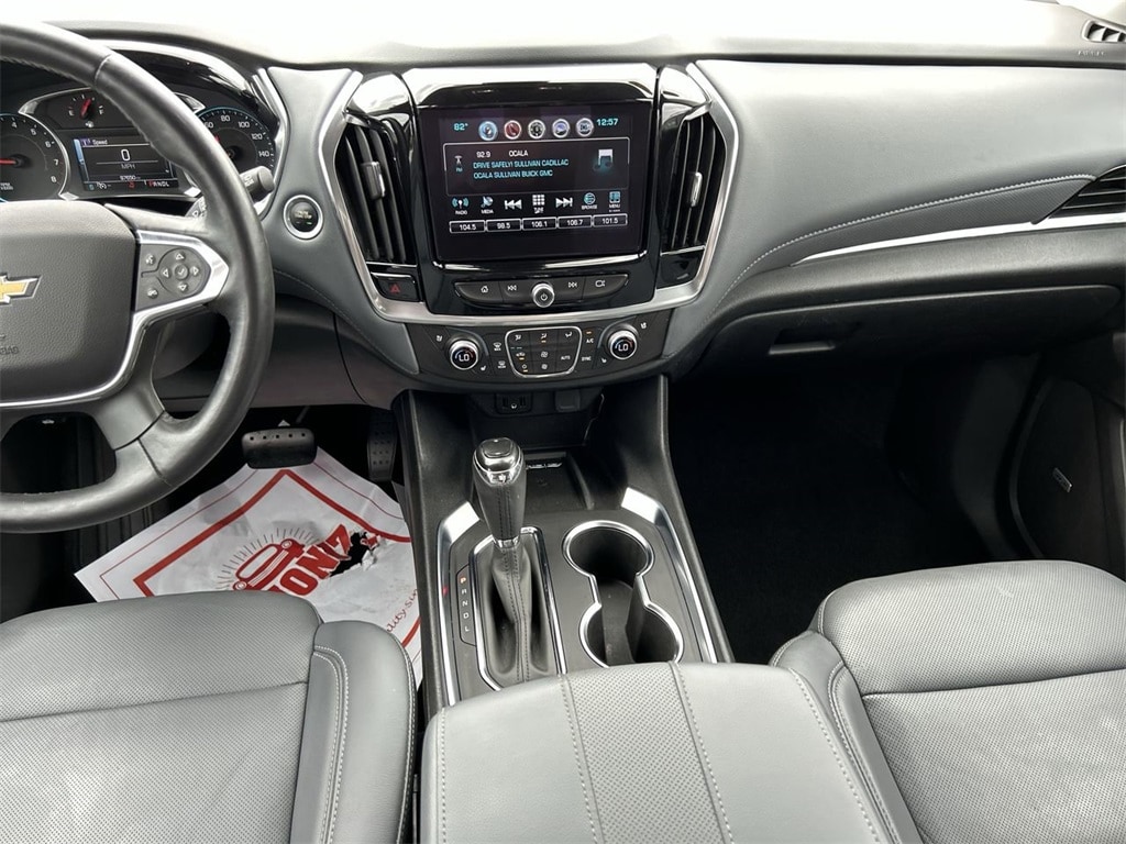 The price does not include tax, tag, license, an electronic filing fee of $449.00**, a private tag agency fee of $199.00**, and a predelivery service charge of $1199.00** **This charge represents costs and profit to the dealer for items such as inspecting, cleaning, and adjusting vehicles, as well as preparing documents related to the sale.* EPA-estimate metric: these are contingent on ideal conditions within a lab. Real-world situations such as carrying passengers or cargo, using climate control, driving style, and ambient temperatures can affect actual metrics. 18/27 City/Highway MPG LOCAL TRADE!, BLUETOOTH, BACKUP CAMERA, NAVIGATION SYSTEM, KEYLESS ENTRY, PUSH BUTTON START, Traverse Premier, 4D Sport Utility, 3.6L V6 SIDI VVT, Silver Ice Metallic, Jet Black/Dark Galvanized Leather, 10 Speakers, 3rd row seats: split-bench, 7-Passenger Seating (2-2-3 Seating Configuration), Apple CarPlay/Android Auto, Auto-dimming Rear-View mirror, Automatic temperature control, Bose Premium 10-Speaker Audio System Feature, Brake assist, Compass, Delay-off headlights, Driver Confidence II Package, Dual SkyScape 2-Panel Power Sunroof, Electronic Stability Control, Emergency communication system: OnStar Guidance, Following Distance Indicator, Forward Collision Alert, Front dual zone A/C, Front fog lights, Front License Plate Bracket Mounting Package, Front Pedestrian Braking, Fully automatic headlights, Heated rear seats, Heavy-Duty Cooling System, IntelliBeam Auto High Beam Control Headlamps, Lane Keep Assist w/Lane Departure Warning, Low Speed Forward Automatic Braking, Panic alarm, Power Liftgate, Preferred Equipment Group 1LZ, Radio: Chevrolet MyLink AM/FM Stereo w/Navigation, Security system, SiriusXM Satellite Radio, Steering wheel memory, Trailering Equipment, Wheels: 20" Argent Metallic Machine Faced Aluminum.