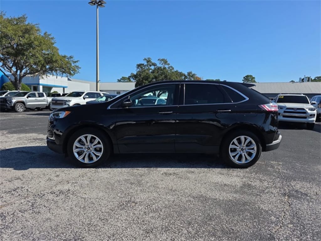 DECEMBER SAVINGS, END OF YEAR DEALS, GET THEM BEFORE THEY ARE GONE! The price does not include tax, tag, license, an electronic filing fee of $449.00**, a private tag agency fee of $199.00**, and a predelivery service charge of $1199.00** **This charge represents costs and profit to the dealer for items such as inspecting, cleaning, and adjusting vehicles, as well as preparing documents related to the sale. * EPA-estimate metric: these are contingent on ideal conditions within a lab. Real-world situations such as carrying passengers or cargo, using climate control, driving style, and ambient temperatures can affect actual metrics. 21/28 City/Highway MPG NAVIGATION SYSTEM, ALLOY WHEELS, BACKUP CAMERA, BLUETOOTH, CLIMATE PACKAGE, HEAT PACKAGE, LEATHER SEATS, MEMORY PACKAGE, POWER PACKAGE, REMOTE START, SUNROOF/MOONROOF, AWD. CARFAX One-Owner. Recent Arrival! Black Metallic 2024 Ford Edge Titanium AWD 8-Speed Automatic EcoBoost 2.0L I4 GTDi DOHC Turbocharged VCT