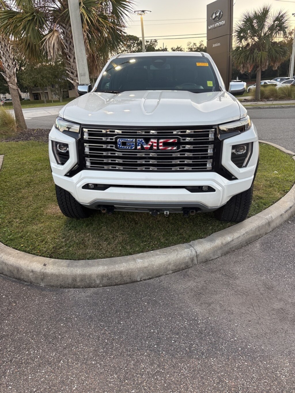 The price does not include tax, tag, license, an electronic filing fee of $449.00**, a private tag agency fee of $199.00**, and a predelivery service charge of $1199.00** **This charge represents costs and profit to the dealer for items such as inspecting, cleaning, and adjusting vehicles, as well as preparing documents related to the sale. * EPA-estimate metric: these are contingent on ideal conditions within a lab. Real-world situations such as carrying passengers or cargo, using climate control, driving style, and ambient temperatures can affect actual metrics. 17/21 City/Highway MPG NAVIGATION, ONE OWNER, 4WD, 120-Volt Bed Mounted Power Outlet, 2 1st Row USB Charge/Data Ports, 2 Rear USB Ports in Center Console (Charge-Only), 5" Rectangular Chrome Assist Steps, 6-Way Power Passenger Seat Adjuster, 8-Way Power Driver Seat Adjuster, Adaptive Cruise Control, AM/FM radio: SiriusXM, Automatic Emergency Braking, Automatic Locking Rear Differential, Blind Zone Steering Assist, Canyon Pro Safety, Driver & Front Passenger Illuminated Visors, Driver & Front Passenger Ventilated Seats, Driver Memory, Driver Seatback Map Pocket, Dual-Zone Automatic Air Conditioning, EZ-Lift & Lower Tailgate, Following Distance Indicator, Forward Collision Alert, Front LED Fog Lamps, Front Pedestrian & Bicyclist Braking, HD Surround Vision, Heated Driver & Front Passenger Seats, Heated Power-Adjustable Outside Mirrors, Heated Steering Wheel, Inside Rear-View Auto-Dimming Mirror, IntelliBeam Automatic High Beam On/Off, Interior Overhead Courtesy Light w/Dual Reading Lamp, Lane Keep Assist w/Lane Departure Warning, Manual Rear-Sliding Window, Multicolor 6.3" Diagonal Head-Up Display, MultiStow Tailgate, Navigation System, Power Driver Lumbar Control Seat Adjuster, Power Passenger Lumbar Control Seat Adjuster, Preferred Equipment Group 5SB, Premium 7-Speaker Bose Sound System, ProGrade Trailering System, Radio data system, Radio: 11.3" Diagonal Premium GMC Infotainment Sys, Rear Center Fold-Down Armrest w/2 Cupholders, Rear Cross Traffic Braking, Rear of Console 120-Volt Power Outlet, Rear Pedestrian Alert, Rear-Window Electric Defogger, Remote Vehicle Starter System, Safety Alert Seat, Spray-On Bedliner, Tailgate Keyed Cylinder Lock, Tilt & Telescopic Manual Steering Column, Trailering App System, Ultrasonic Rear Park Assist, Wireless Apple CarPlay/Wireless Android Auto, Wireless Charging. Summit White 2023 GMC Canyon Denali 4WD 8-Speed Automatic 2.7L Turbo