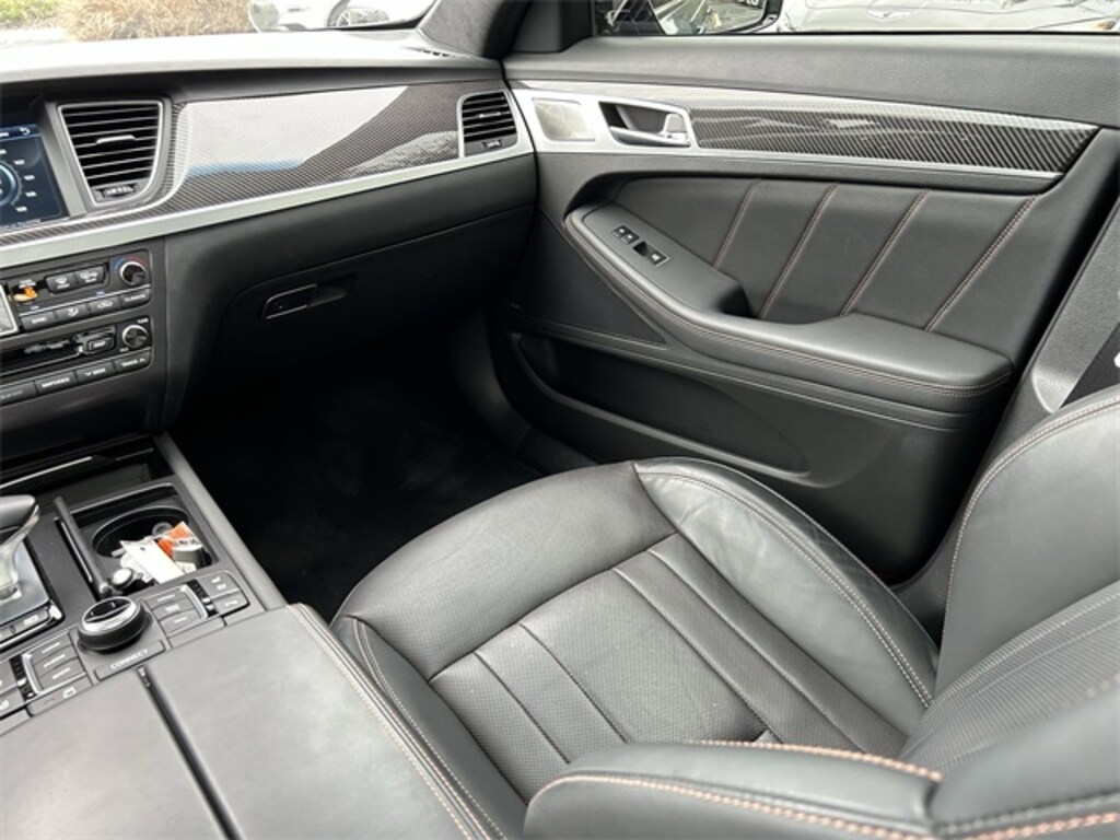 This vehicle comes equipped with 17 Speakers, 4-Wheel Disc Brakes, ABS brakes, Adaptive suspension, Air Conditioning, Alloy wheels, AM/FM radio: SiriusXM, Android Auto & Apple CarPlay, Anti-whiplash front head restraints, Auto High-beam Headlights, Auto tilt-away steering wheel, Auto-dimming door mirrors, Auto-dimming Rear-View mirror, Auto-leveling suspension, Automatic temperature control, Brake assist, Bumpers: body-color, CD player, Compass, Delay-off headlights, Driver door bin, Driver vanity mirror, Dual front impact airbags, Dual front side impact airbags, DVD-Audio, Electronic Stability Control, Emergency communication system: Genesis Connected Services, Four wheel independent suspension, Front anti-roll bar, Front Bucket Seats, Front Center Armrest, Front dual zone A/C, Front fog lights, Front reading lights, Fully automatic headlights, Garage door transmitter: HomeLink, Heads-Up Display, Heated & Ventilated Front Sport Seats, Heated door mirrors, Heated front seats, Heated rear seats, Illuminated entry, Knee airbag, Leather Shift Knob, Leather steering wheel, Low tire pressure warning, Memory seat, Nappa Leather Seating Surfaces, Navigation System, Occupant sensing airbag, Outside temperature display, Overhead airbag, Overhead console, Panic alarm, Passenger door bin, Passenger vanity mirror, Power door mirrors, Power driver seat, Power moonroof, Power passenger seat, Power steering, Power windows, Radio data system, Radio: AM/FM/HD/SiriusXM/CD/DVD/MP3 Audio System, Rain sensing wipers, Rear anti-roll bar, Rear reading lights, Rear seat center armrest, Rear side impact airbag, Rear Window Blind, Rear window defroster, Remote keyless entry, Security system, Speed control, Speed-sensing steering, Speed-Sensitive Wipers, Sport steering wheel, Steering wheel memory, Steering wheel mounted audio controls, Tachometer, Telescoping steering wheel, Tilt steering wheel, Traction control, Trip computer, Turn signal indicator mirrors, Variably intermittent wipers, Ventilated front seats, and Wheels: 19" x 8.5J Fr & 19" x 9.0J Rr Sport Alloy . Odometer is 67684 miles below market average!