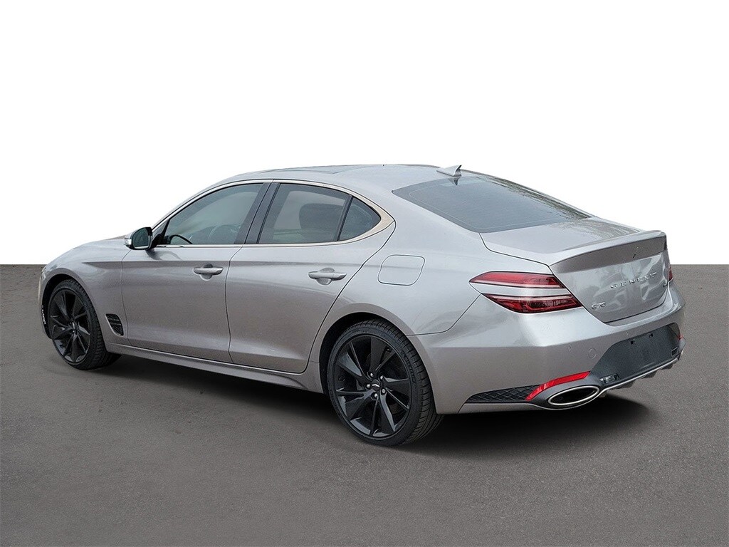 This vehicle comes equipped with Sport Advanced Package (Alloy Pedals, Dark Chrome Grille & Daylight Opening, Door & Console Aluminum Trim w/Sport Pattern, Forward/Reverse Parking Distance Warning, Front Side Acoustic Laminated Glass, Genesis Digital Key, Option Group 03, Power Driver Seat Side Bolster & Cushion Extension, Radio: AM/FM/SiriusXM/HD Lexicon Prem Audio System, Variable Exhaust Valve System, Ventilated Front Seats, Wheels: 19" x 8.0J Fr & 19" x 8.5J Rr Sport Alloy, Wide Sunroof, and Wireless Device Charging), 4-Wheel Disc Brakes, 6 Speakers, ABS brakes, Air Conditioning, Alloy wheels, AM/FM radio: SiriusXM, Android Auto & Apple CarPlay, Anti-whiplash front head restraints, Auto High-beam Headlights, Auto-dimming door mirrors, Auto-dimming Rear-View mirror, Automatic temperature control, Brake assist, Bumpers: body-color, Delay-off headlights, Driver door bin, Driver vanity mirror, Dual front impact airbags, Dual front side impact airbags, Electronic Stability Control, Emergency communication system: Genesis Connected Services, Exterior Parking Camera Rear, Four wheel independent suspension, Front anti-roll bar, Front Bucket Seats, Front Center Armrest, Front dual zone A/C, Front reading lights, Fully automatic headlights, Garage door transmitter: HomeLink, Heated door mirrors, Heated front seats, Heated Multi-Adjustable Front Bucket Seats, Illuminated entry, Knee airbag, Leather Seating Surfaces, Low tire pressure warning, Memory seat, Navigation System, Occupant sensing airbag, Outside temperature display, Overhead airbag, Overhead console, Panic alarm, Passenger door bin, Passenger vanity mirror, Power door mirrors, Power driver seat, Power passenger seat, Power steering, Power windows, Premium First Aid Kit, Radio: AM/FM/SiriusXM/HD Audio System, Rain sensing wipers, Rear anti-roll bar, Rear Bumper Applique, Rear reading lights, Rear seat center armrest, Rear window defroster, Remote keyless entry, Reversible Cargo Tray, Security system, Speed control, Speed-sensing steering, Speed-Sensitive Wipers, Split folding rear seat, Steering wheel memory, Steering wheel mounted audio controls, Tachometer, Telescoping steering wheel, Tilt steering wheel, Traction control, Trip computer, Turn signal indicator mirrors, Variably intermittent wipers, Wheel Locks, and Wheels: 19" x 8.0J Fr & 19" x 8.5J Rr Alloy .