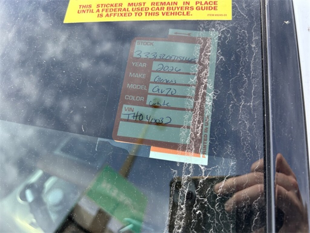 The price does not include tax, tag, license, an electronic filing fee of $449.00**, a private tag agency fee of $199.00**, and a predelivery service charge of $1199.00** **This charge represents costs and profit to the dealer for items such as inspecting, cleaning, and adjusting vehicles, as well as preparing documents related to the sale.* EPA-estimate metric: these are contingent on ideal conditions within a lab. Real-world situations such as carrying passengers or cargo, using climate control, driving style, and ambient temperatures can affect actual metrics. 22/28 City/Highway MPG Uyuni White 2026 Genesis GV70 2.5T Advanced AWD 8-Speed Automatic with SHIFTRONIC 2.5L DOHC