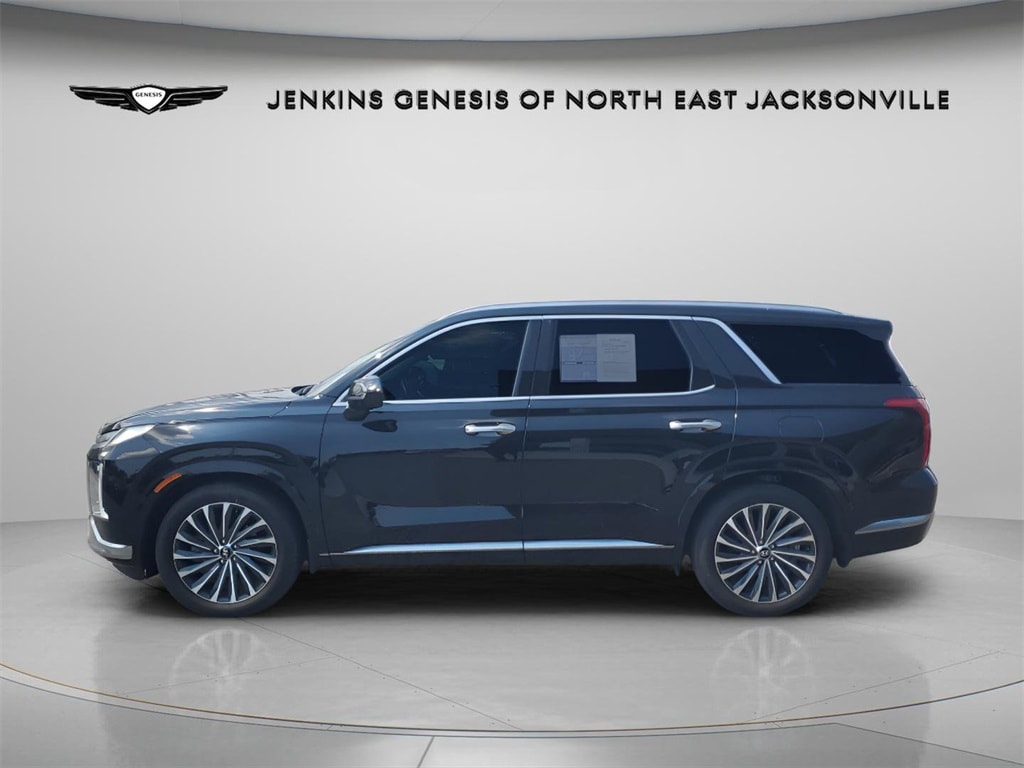 This vehicle comes equipped with Option Group 01, 12 Speakers, 3.510 Axle Ratio, 3rd row seats: split-bench, 4-Wheel Disc Brakes, ABS brakes, Air Conditioning, Alloy wheels, AM/FM radio: SiriusXM, Apple CarPlay & Android Auto, Auto High-beam Headlights, Auto-dimming door mirrors, Auto-dimming Rear-View mirror, Auto-leveling suspension, Automatic temperature control, Brake assist, Bumpers: body-color, Cargo Cover/Screen, Cargo Net, Cargo Tray, Carpeted Floor Mats, Compass, Delay-off headlights, Driver door bin, Driver vanity mirror, Dual front impact airbags, Dual front side impact airbags, Electronic Stability Control, Emergency communication system: Blue Link Connected Car Service (3-year complimentary subscription), Exterior Parking Camera Rear, Four wheel independent suspension, Front anti-roll bar, Front Bucket Seats, Front Center Armrest, Front dual zone A/C, Front reading lights, Fully automatic headlights, Garage door transmitter: HomeLink, harman/kardon® Speakers, Heads-Up Display, Heated & Ventilated Front Bucket Seats, Heated door mirrors, Heated front seats, Heated rear seats, Heated steering wheel, Illuminated entry, Knee airbag, Low tire pressure warning, Memory seat, Navigation System, Occupant sensing airbag, Outside temperature display, Overhead airbag, Overhead console, Panic alarm, Passenger door bin, Passenger vanity mirror, Power door mirrors, Power driver seat, Power Liftgate, Power moonroof, Power passenger seat, Power steering, Power windows, Premium Nappa Leather Seat Trim, Radio data system, Radio: AM/FM/MP3 Premium Audio System, Rain sensing wipers, Rear air conditioning, Rear anti-roll bar, Rear audio controls, Rear Bumper Applique, Rear reading lights, Rear side impact airbag, Rear window defroster, Rear window wiper, Reclining 3rd row seat, Remote keyless entry, Security system, Speed control, Speed-sensing steering, Splash Trim, Split folding rear seat, Spoiler, Steering wheel mounted audio controls, Tachometer, Telescoping steering wheel, Tilt steering wheel, Traction control, Trip computer, Turn signal indicator mirrors, Variably intermittent wipers, Ventilated front seats, Ventilated rear seats, and Wheels: 20" x 7.5J Calligraphy Exclusive Alloy .