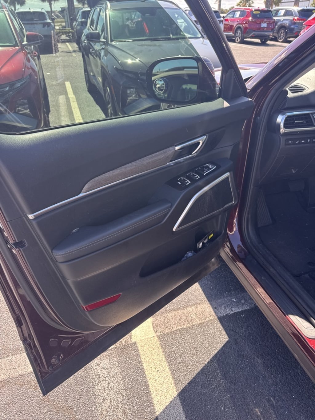 The price does not include tax, tag, license, an electronic filing fee of $449.00**, a private tag agency fee of $199.00**, and a predelivery service charge of $1199.00** **This charge represents costs and profit to the dealer for items such as inspecting, cleaning, and adjusting vehicles, as well as preparing documents related to the sale.* EPA-estimate metric: these are contingent on ideal conditions within a lab. Real-world situations such as carrying passengers or cargo, using climate control, driving style, and ambient temperatures can affect actual metrics. 20/26 City/Highway MPG LOCAL TRADE!, BLUETOOTH, BACKUP CAMERA, NAVIGATION SYSTEM, ANDROID AUTO, APPLE PLAY, AUTOMATIC HEADLIGHTS, HEATED/COOLED SEATS, KEYLESS ENTRY, PUSH BUTTON START, TOUCH SCREEN CONTROLS, Telluride EX, 4D Sport Utility, Sangria, Black Leather, 20" x 7.5" Machined Alloy Wheels, 2nd Row Captain Chairs, Automatic temperature control, Brake assist, Delay-off headlights, Electronic Stability Control, Emergency communication system: 911 Connect, EX Premium Package, Front dual zone A/C, Fully automatic headlights, Leather Seat Trim, LED Headlamps, Panic alarm, Power Liftgate, Reclining 3rd row seat, Satin Chrome Roof Rails, Security system, Split folding rear seat.