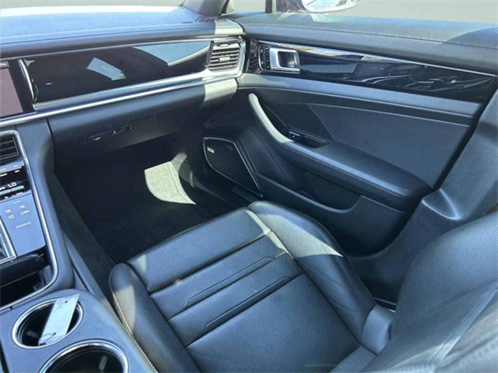 This vehicle comes equipped with 10 Speakers, 4-Wheel Disc Brakes, 8-Way Power Seats, ABS brakes, Adaptive suspension, Air Conditioning, Alloy wheels, AM/FM radio: SiriusXM, Apple CarPlay, Auto-dimming door mirrors, Auto-dimming Rear-View mirror, Automatic temperature control, Brake assist, Bumpers: body-color, Compass, Delay-off headlights, Driver door bin, Driver vanity mirror, Dual front impact airbags, Dual front side impact airbags, Electronic Stability Control, Exterior Parking Camera Rear, Four wheel independent suspension, Front anti-roll bar, Front Bucket Seats, Front Center Armrest, Front dual zone A/C, Front reading lights, Fully automatic headlights, Garage door transmitter: HomeLink, Heated door mirrors, Heated front seats, Illuminated entry, Knee airbag, Leather Shift Knob, Leather steering wheel, Low tire pressure warning, Memory seat, Navigation System, Occupant sensing airbag, Outside temperature display, Overhead airbag, Overhead console, Panic alarm, Partial Leather Seat Trim, Passenger door bin, Passenger vanity mirror, Porsche Communication Management, Power door mirrors, Power driver seat, Power Liftgate, Power moonroof, Power passenger seat, Power steering, Power windows, Radio data system, Rain sensing wipers, Rear anti-roll bar, Rear fog lights, Rear reading lights, Rear seat center armrest, Rear side impact airbag, Rear window defroster, Remote keyless entry, Security system, Speed control, Split folding rear seat, Spoiler, Steering wheel mounted audio controls, Tachometer, Telescoping steering wheel, Tilt steering wheel, Traction control, Trip computer, Variably intermittent wipers, and Wheels: 19" Panamera .