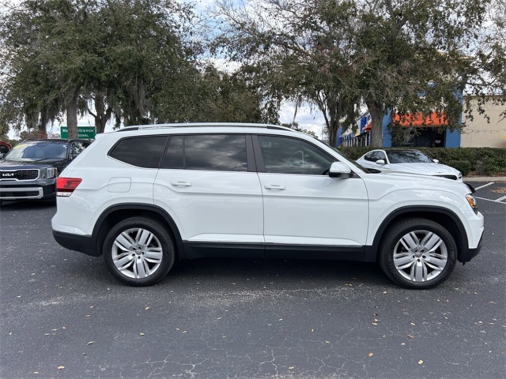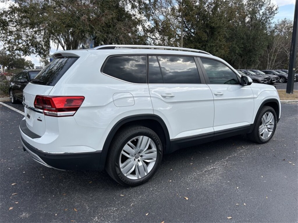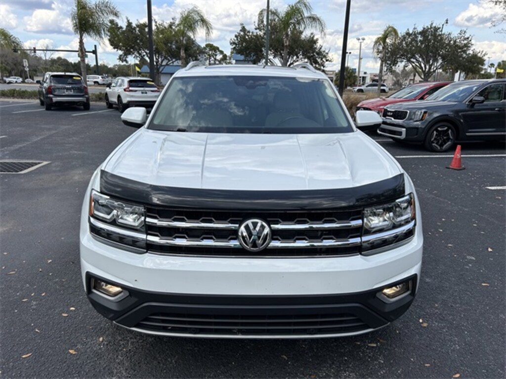 The price does not include tax, tag, license, an electronic filing fee of $449.00**, a private tag agency fee of $199.00**, and a predelivery service charge of $1199.00** **This charge represents costs and profit to the dealer for items such as inspecting, cleaning, and adjusting vehicles, as well as preparing documents related to the sale.* EPA-estimate metric: these are contingent on ideal conditions within a lab. Real-world situations such as carrying passengers or cargo, using climate control, driving style, and ambient temperatures can affect actual metrics. 17/23 City/Highway MPG Pure White 2019 Volkswagen Atlas SEL 4Motion AWD 8-Speed Automatic with Tiptronic 3.6L V6